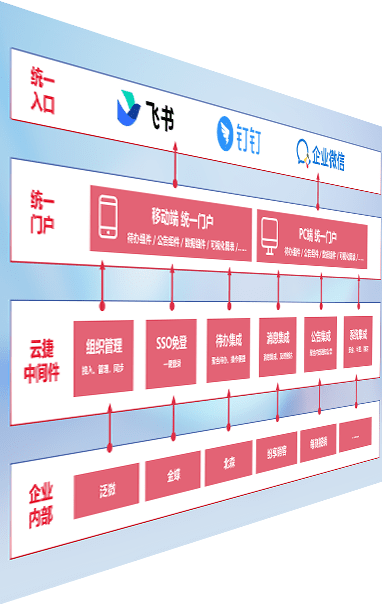 对协作平台提供支持服务,,,支持企业应用与协作平台对接,,,,包含组织同步、、、、消息集成、、、、待办集成等。。。。支持目前主流的协作平台:钉钉、、、企微和飞书。。。